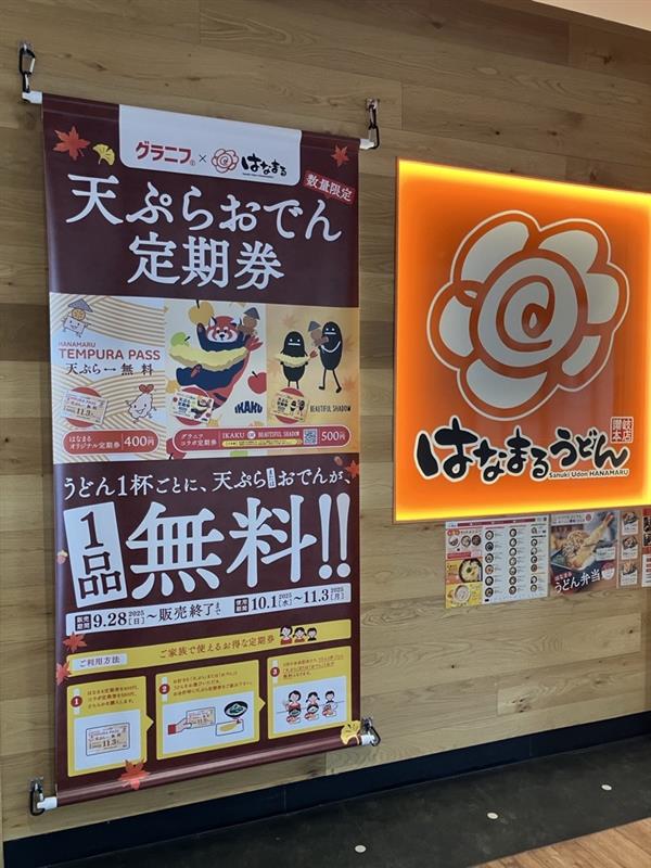 はなまるうどん 天ぷら・おでん定期券販売中!