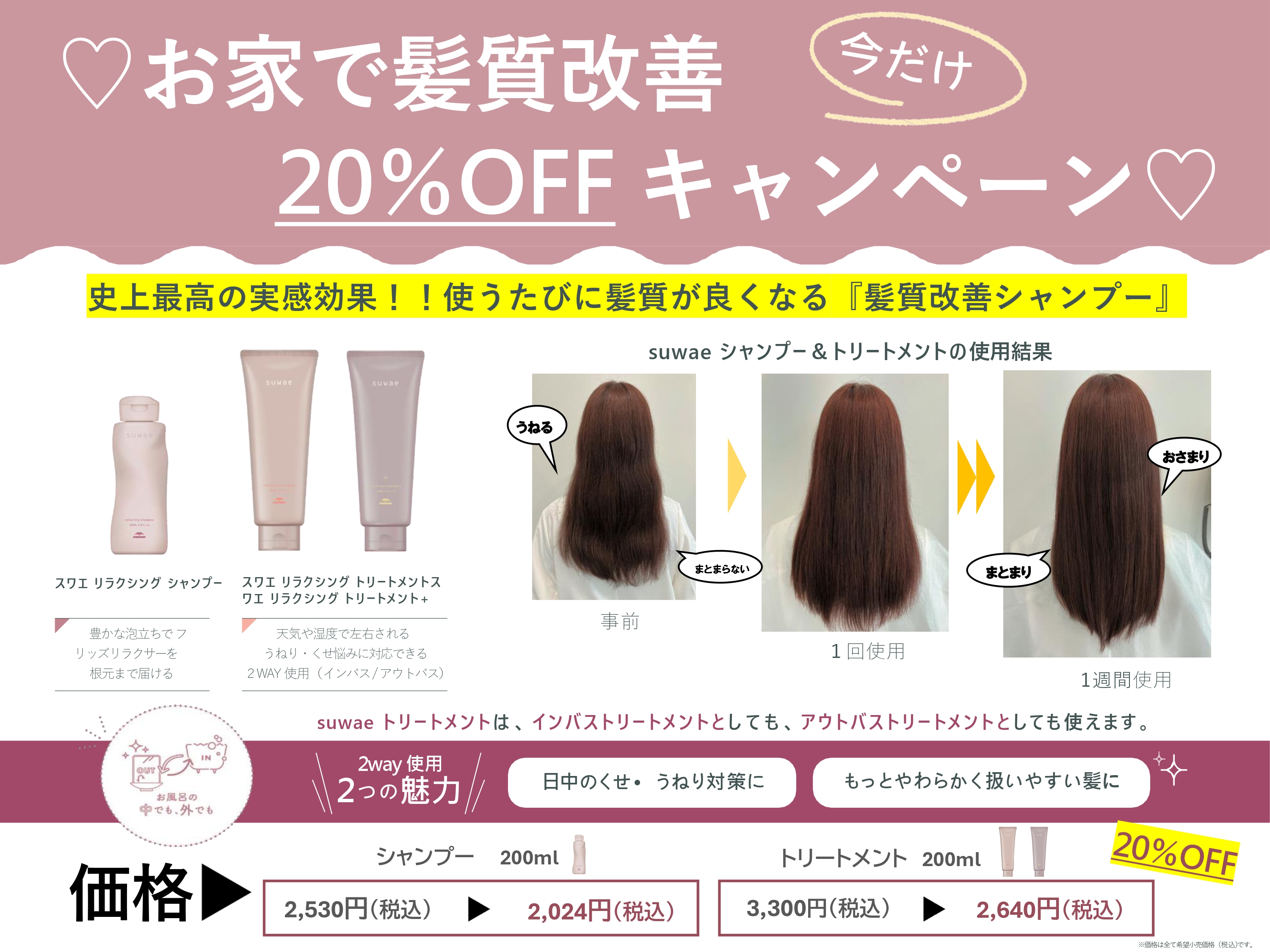 【新発売】くせ・うねりを整える!suwae(スワエ) 20%OFF